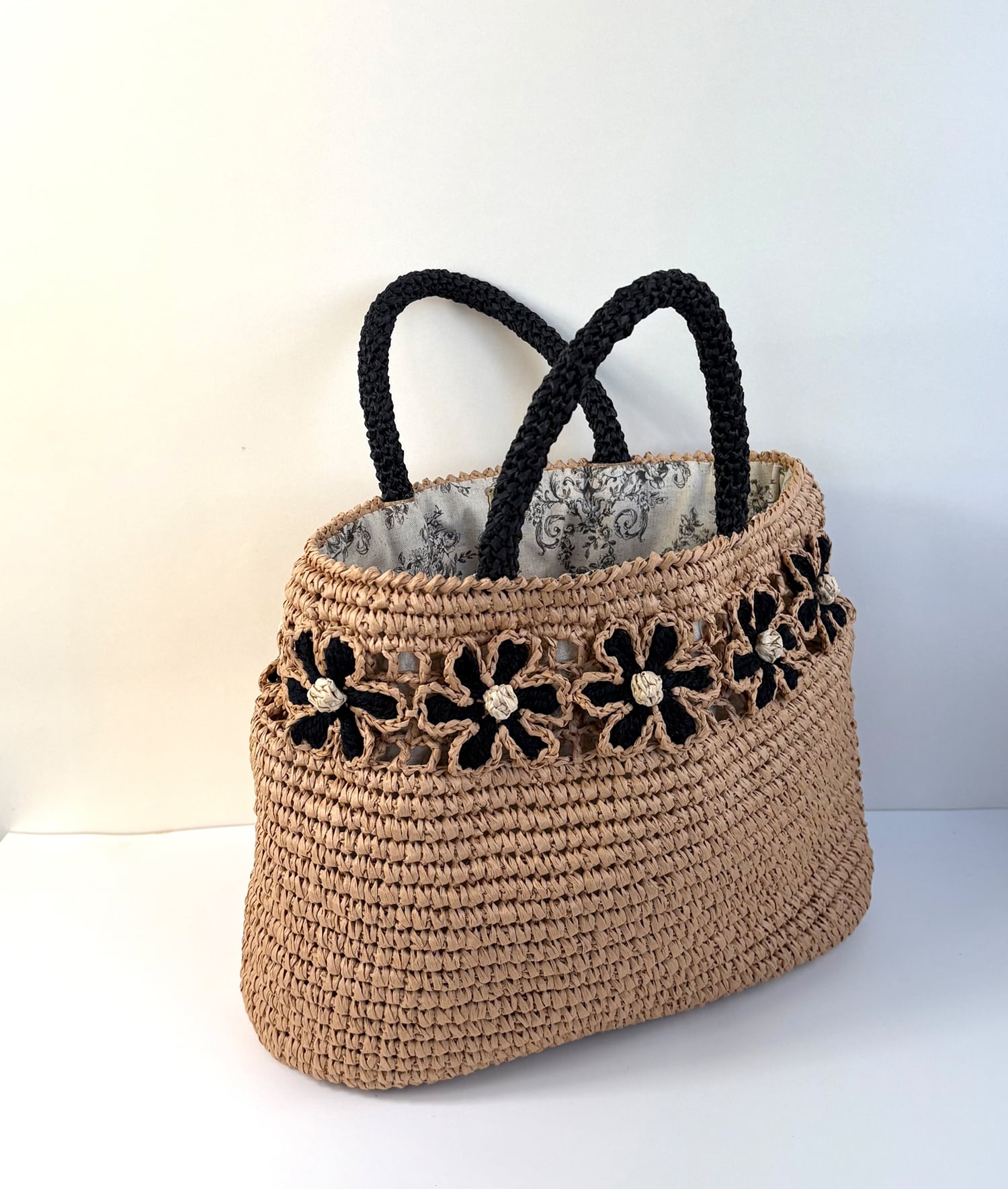 花モチーフ(黒部分):綿100%(国内手芸糸使用)