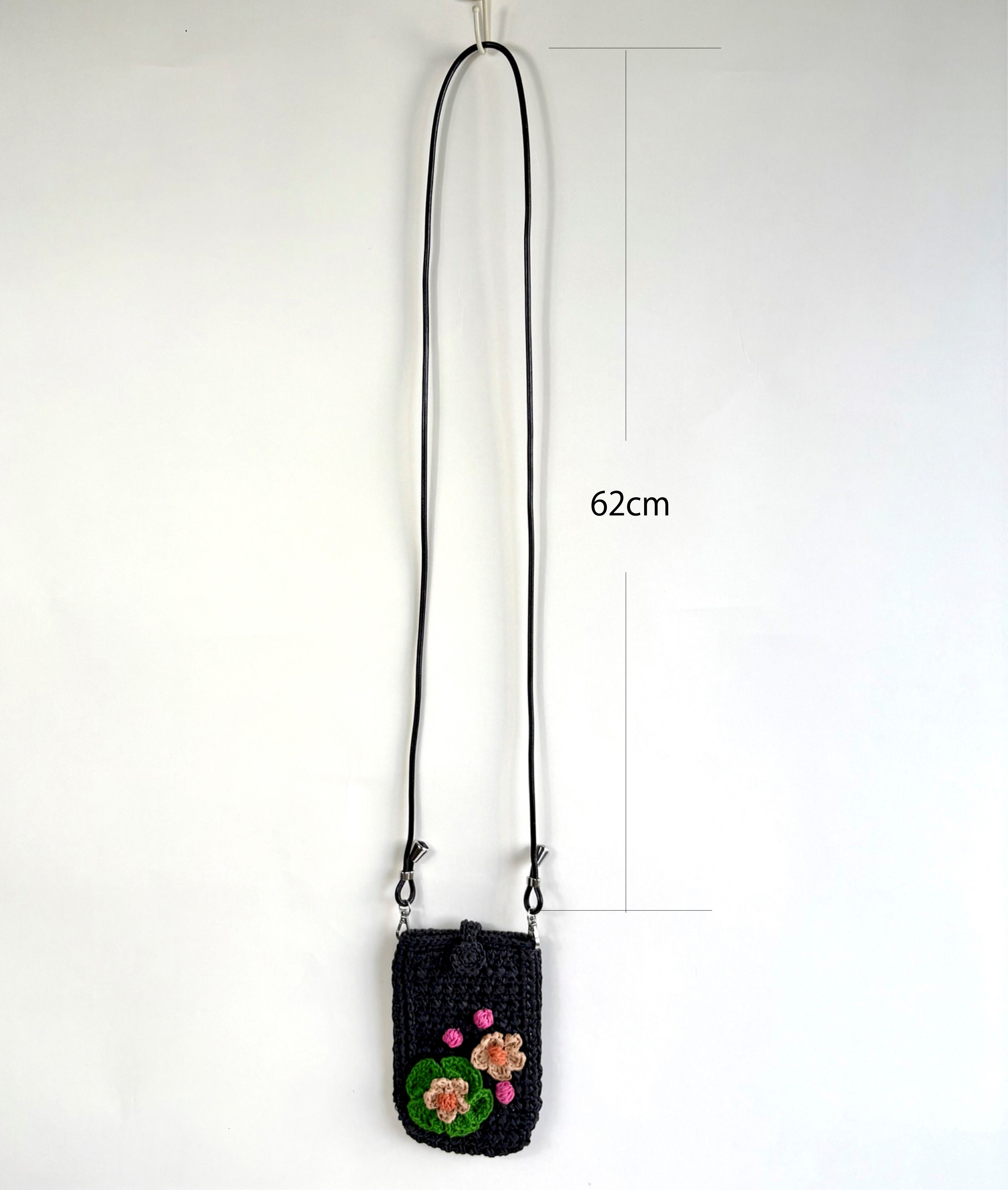 かぎ針花モチーフ飾りのスマホショルダー