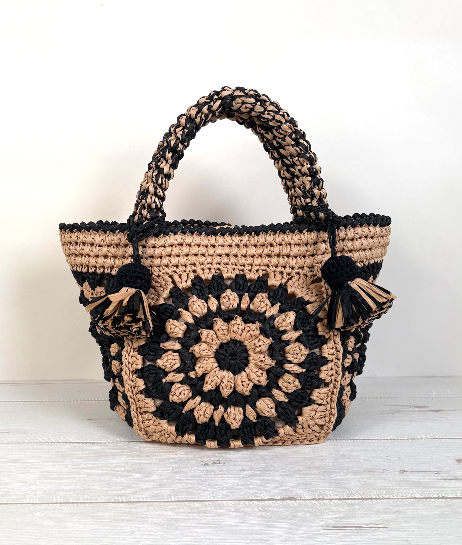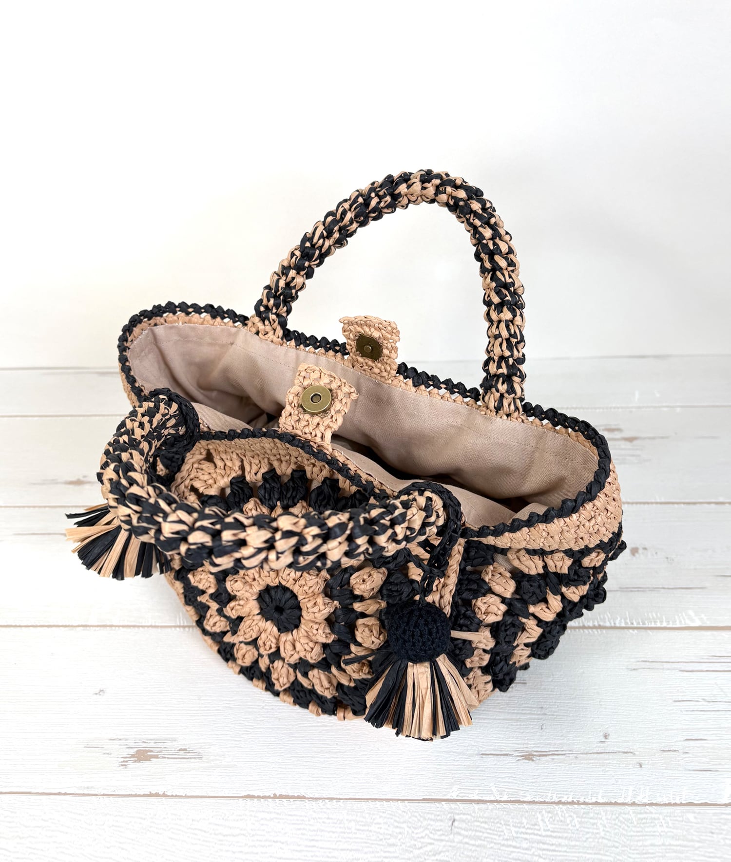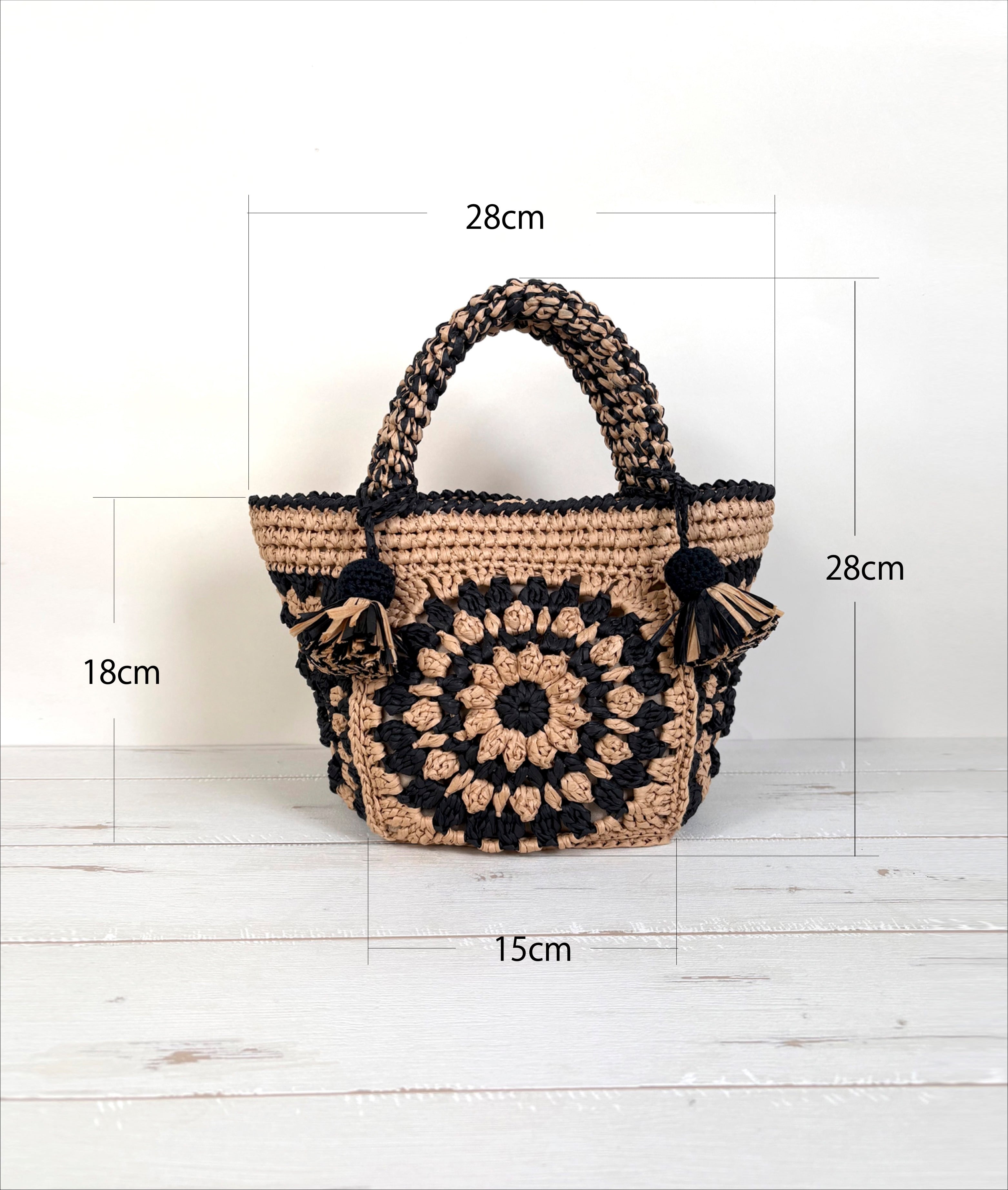 大きな4枚のスクエアモチーフを繋ぎ合わせた夏のトートバッグ