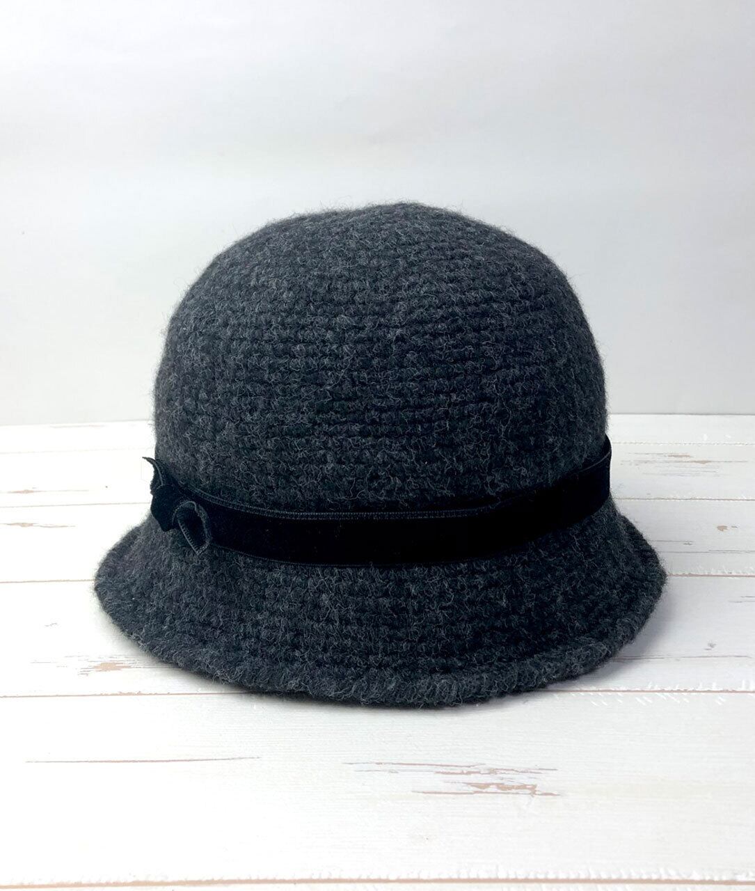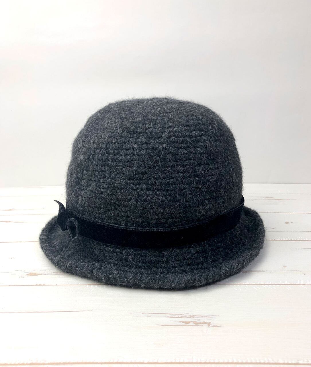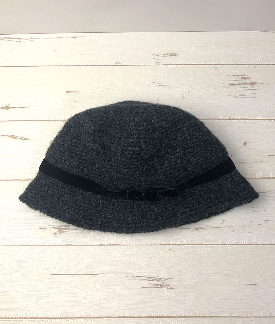 商品名:かぎ針編みリボン付きハット「Charcoal」