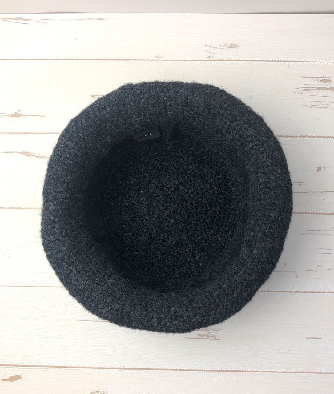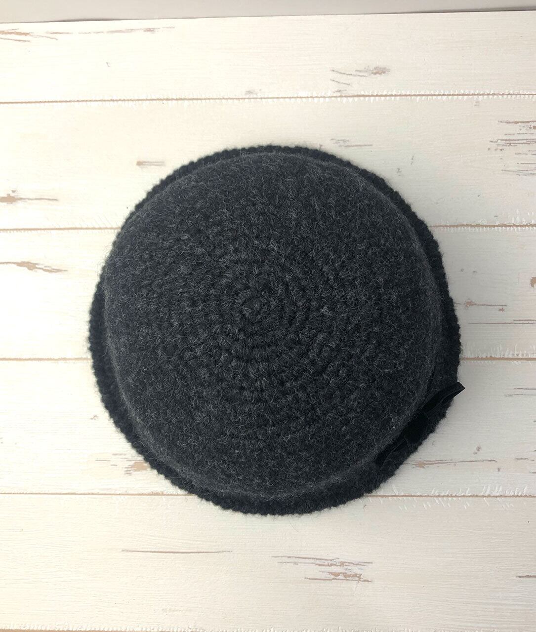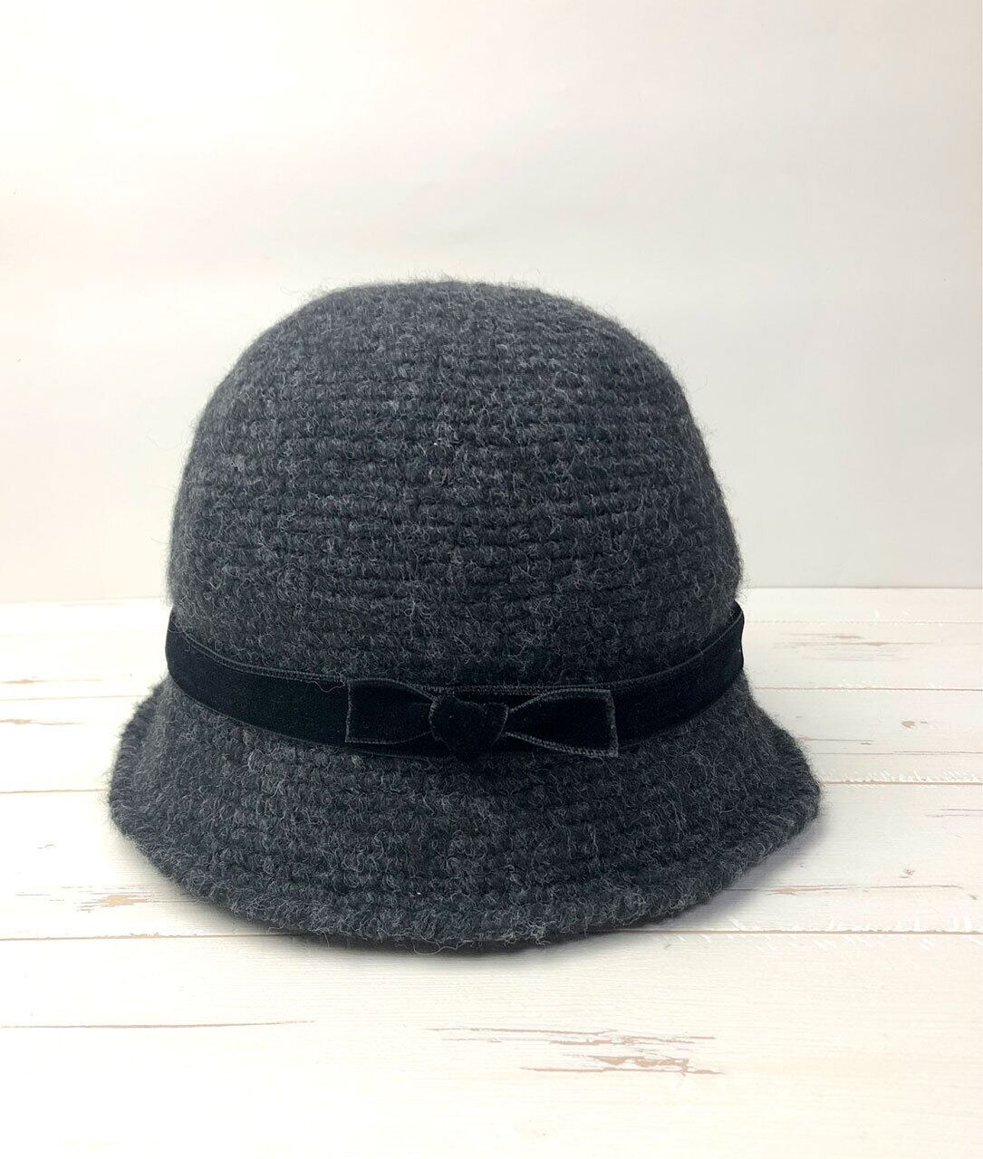 商品名:かぎ針編みリボン付きハット「Charcoal」