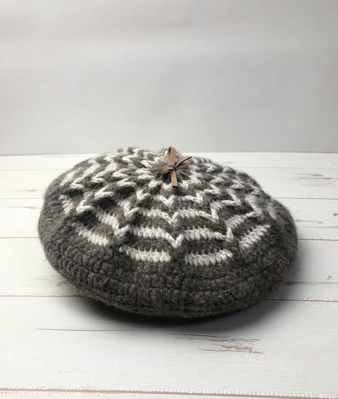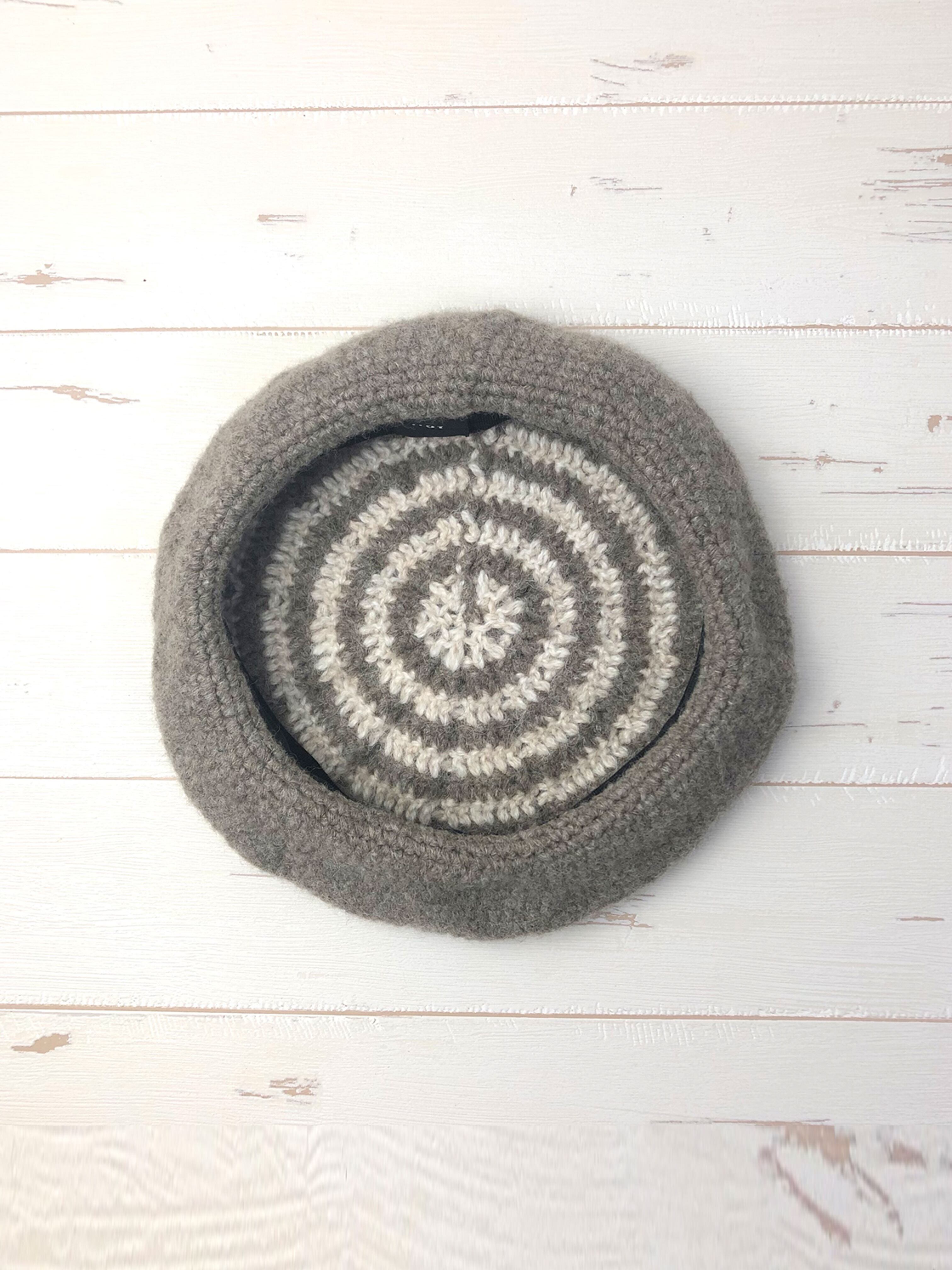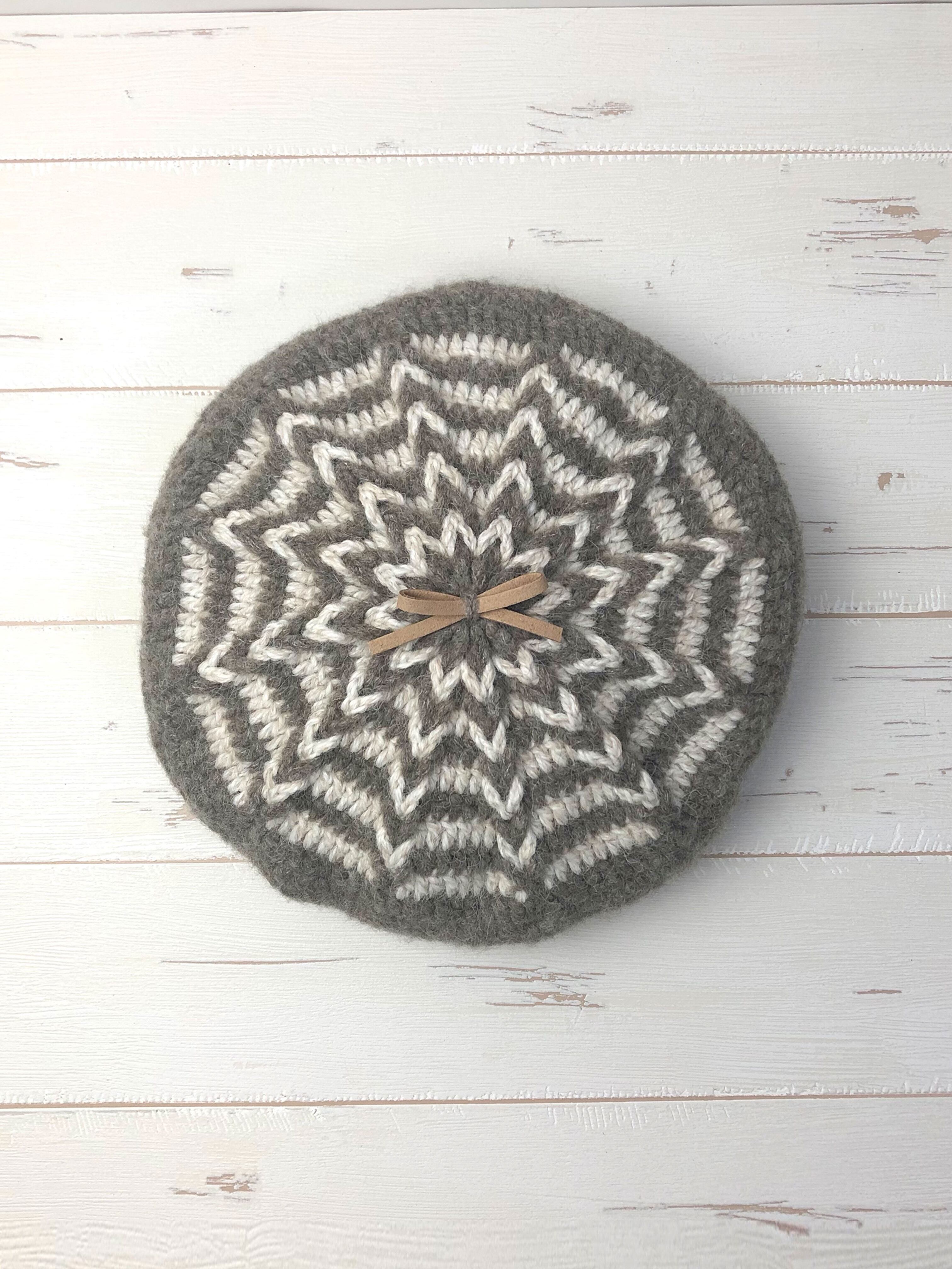 かぎ針編みバイカラー柄ベレー帽(Greige x Ivory)
