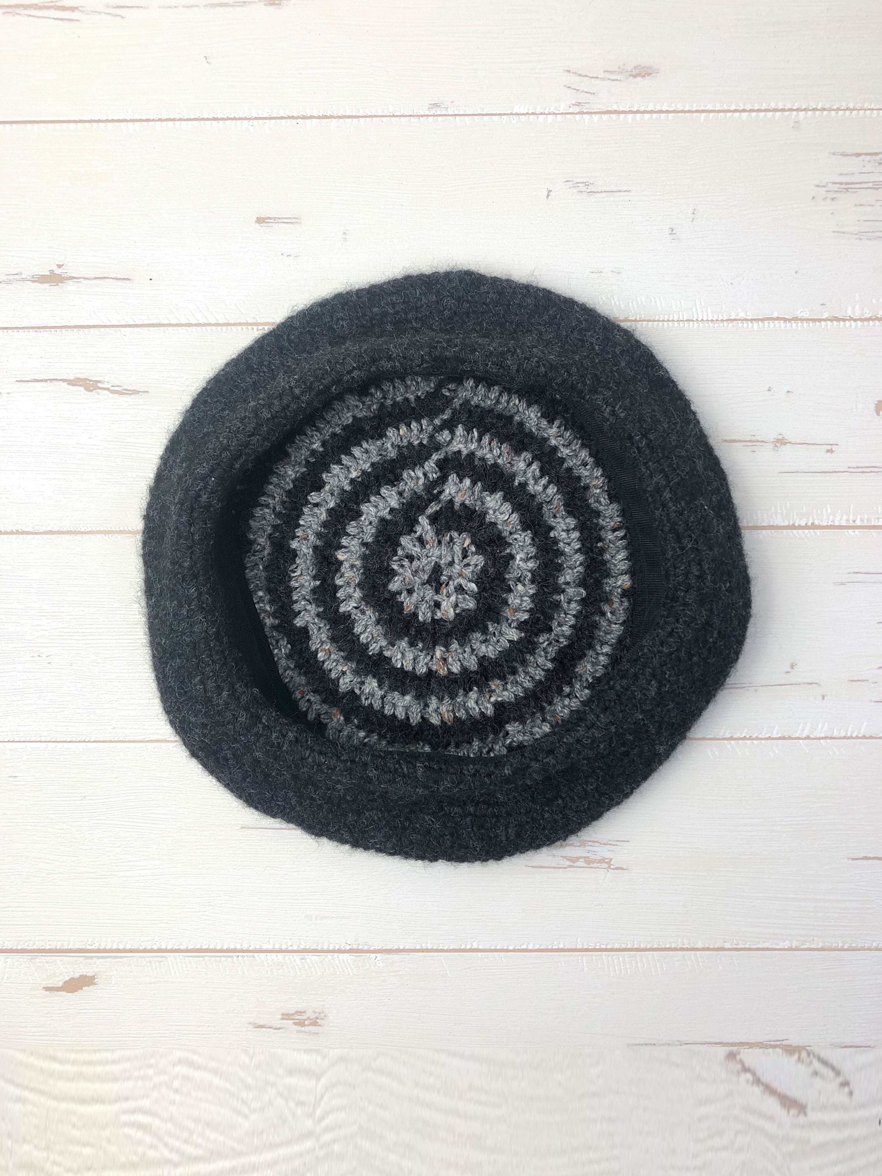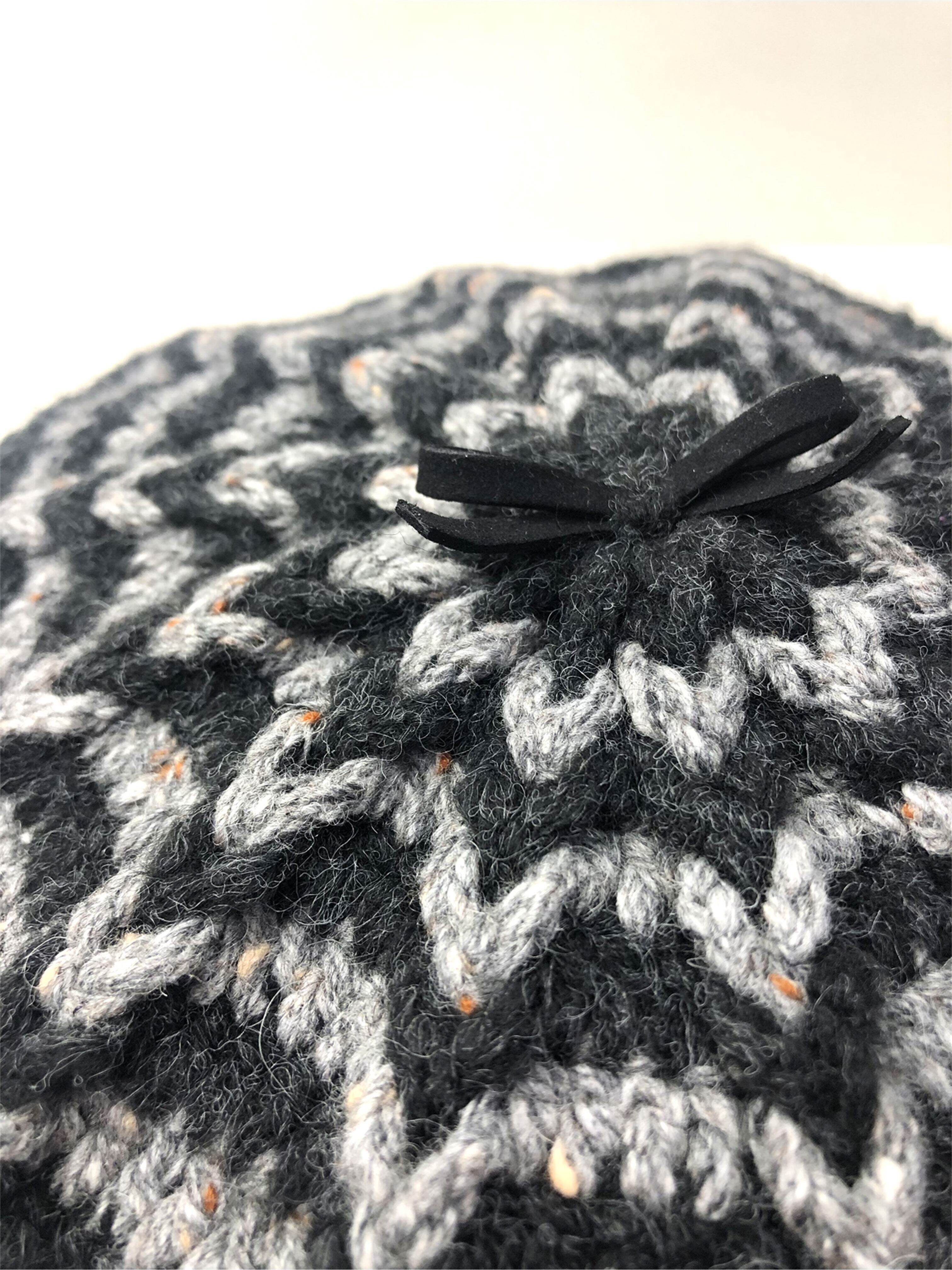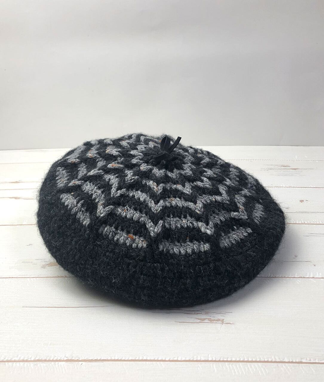 商品名:かぎ針編みバイカラー柄ベレー帽「Charcoal x Gray」