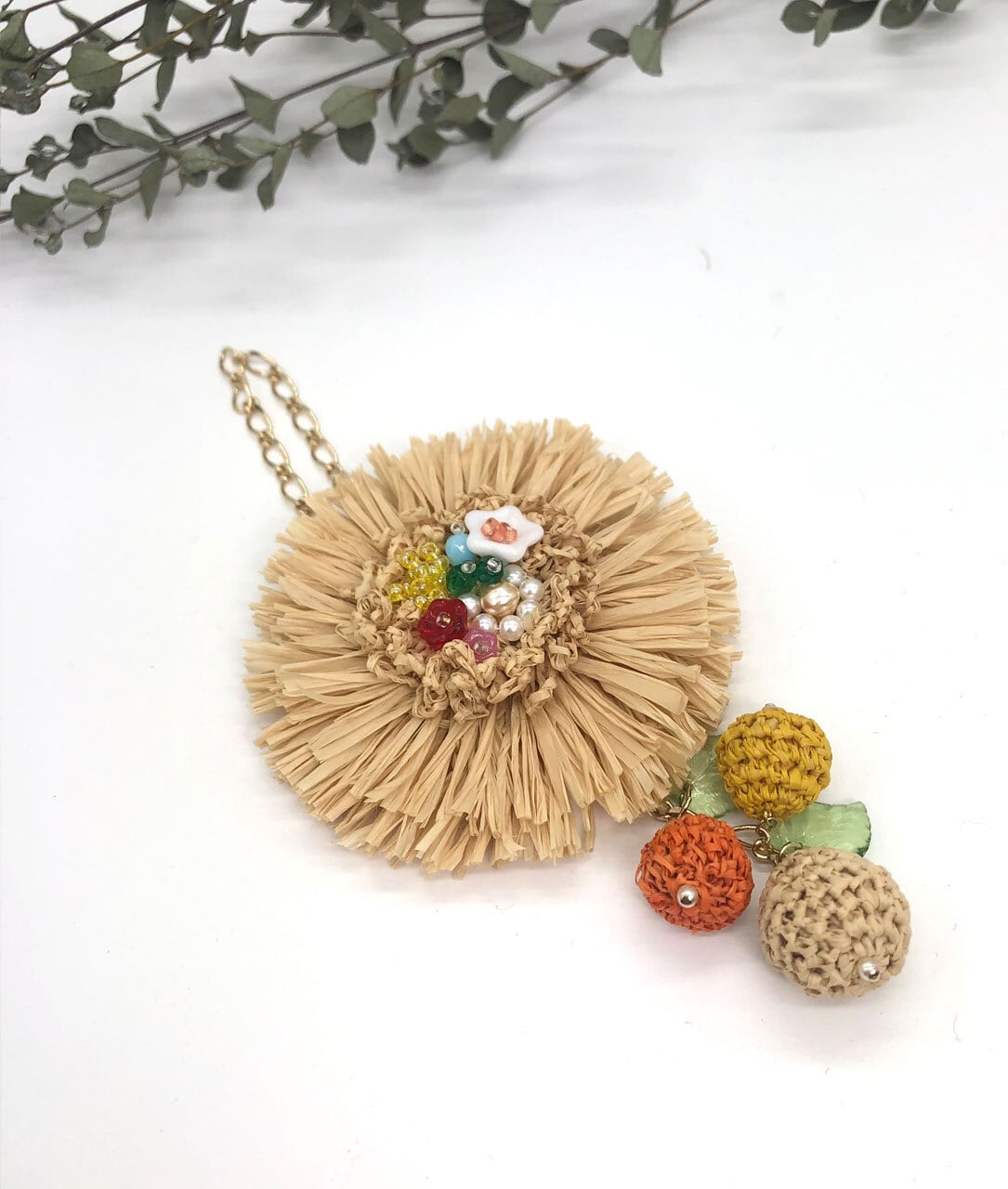 ラフィア&ビーズのバッグチャーム(ナチュラル)