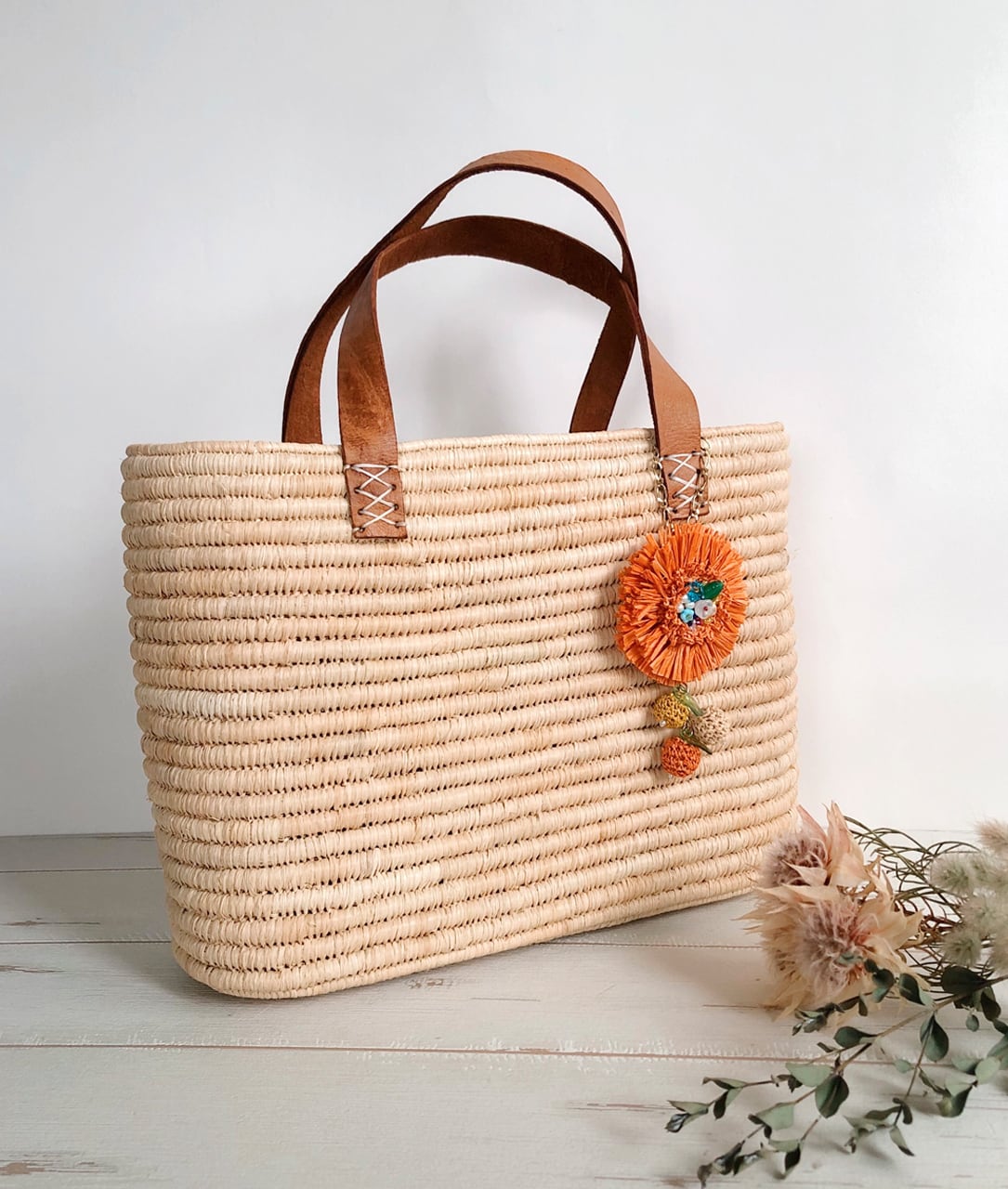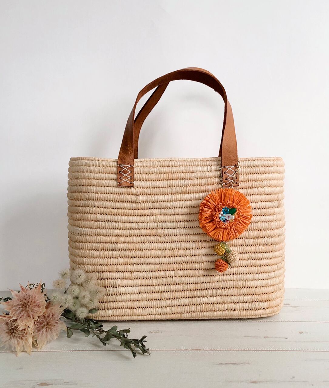 ラフィアのチャーム&バッグセット(Orange x Natural)