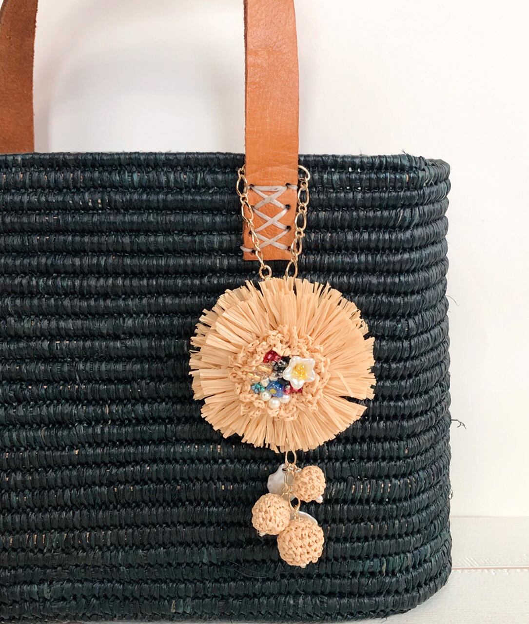 ラフィアのチャーム&バッグセット(Natural x Black)