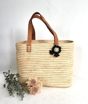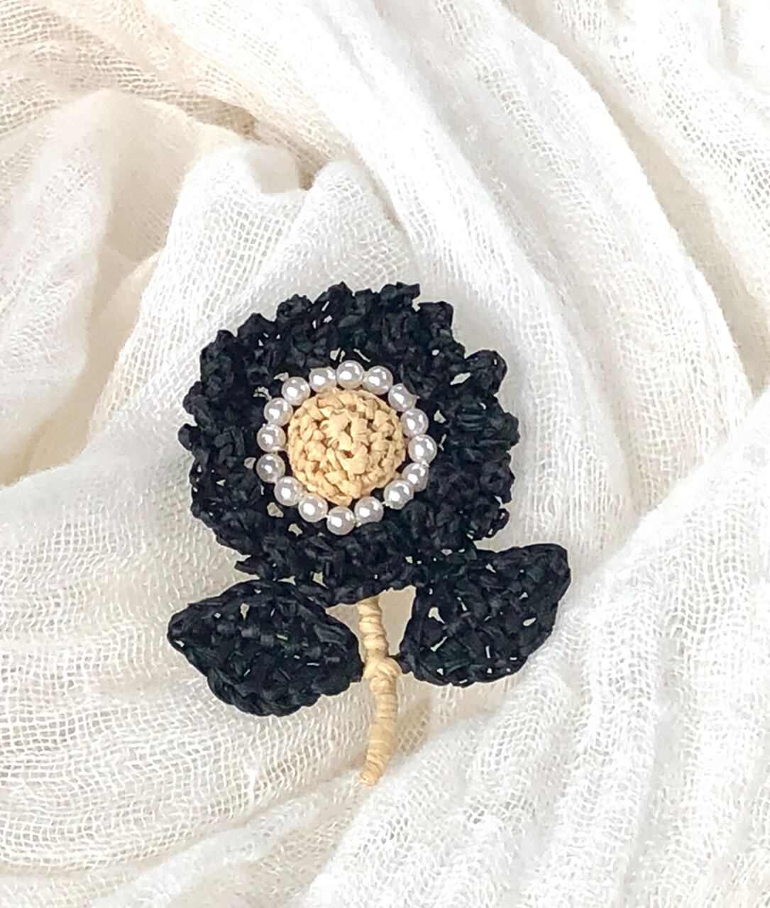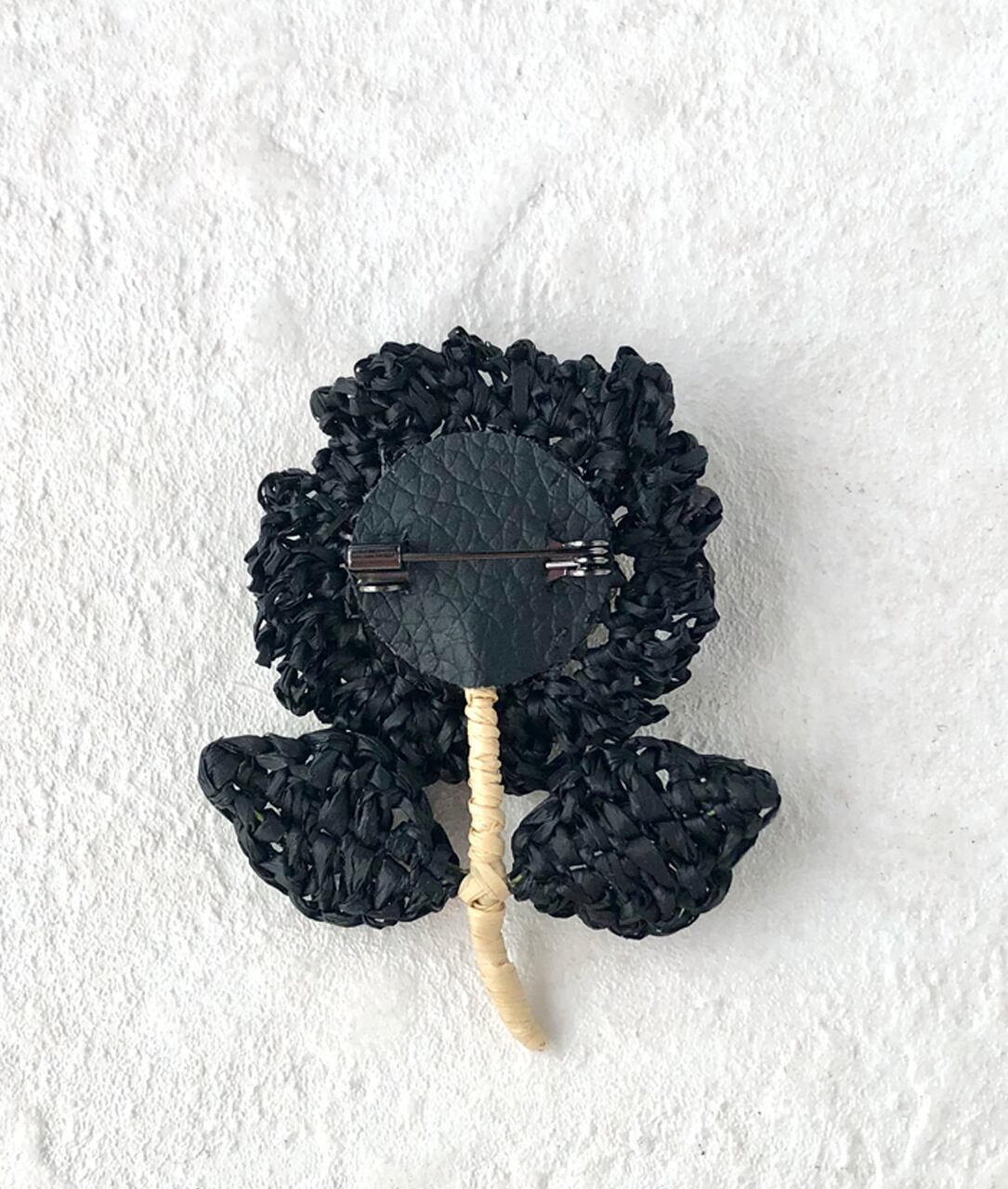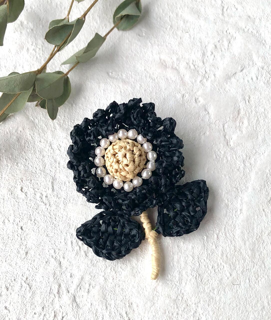 ラフィアの花ブローチ(Black x Natural)