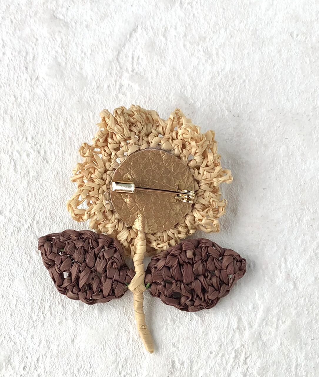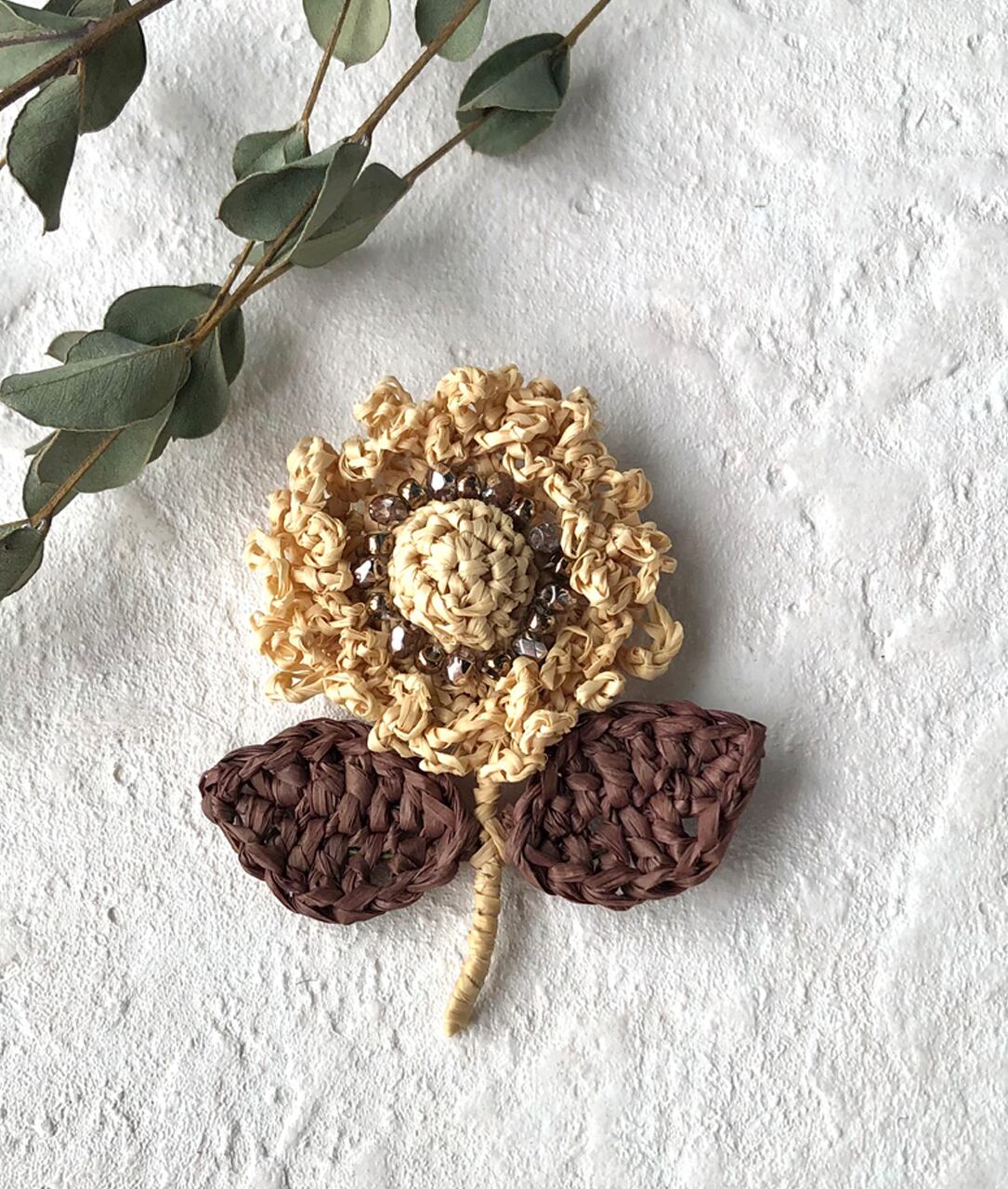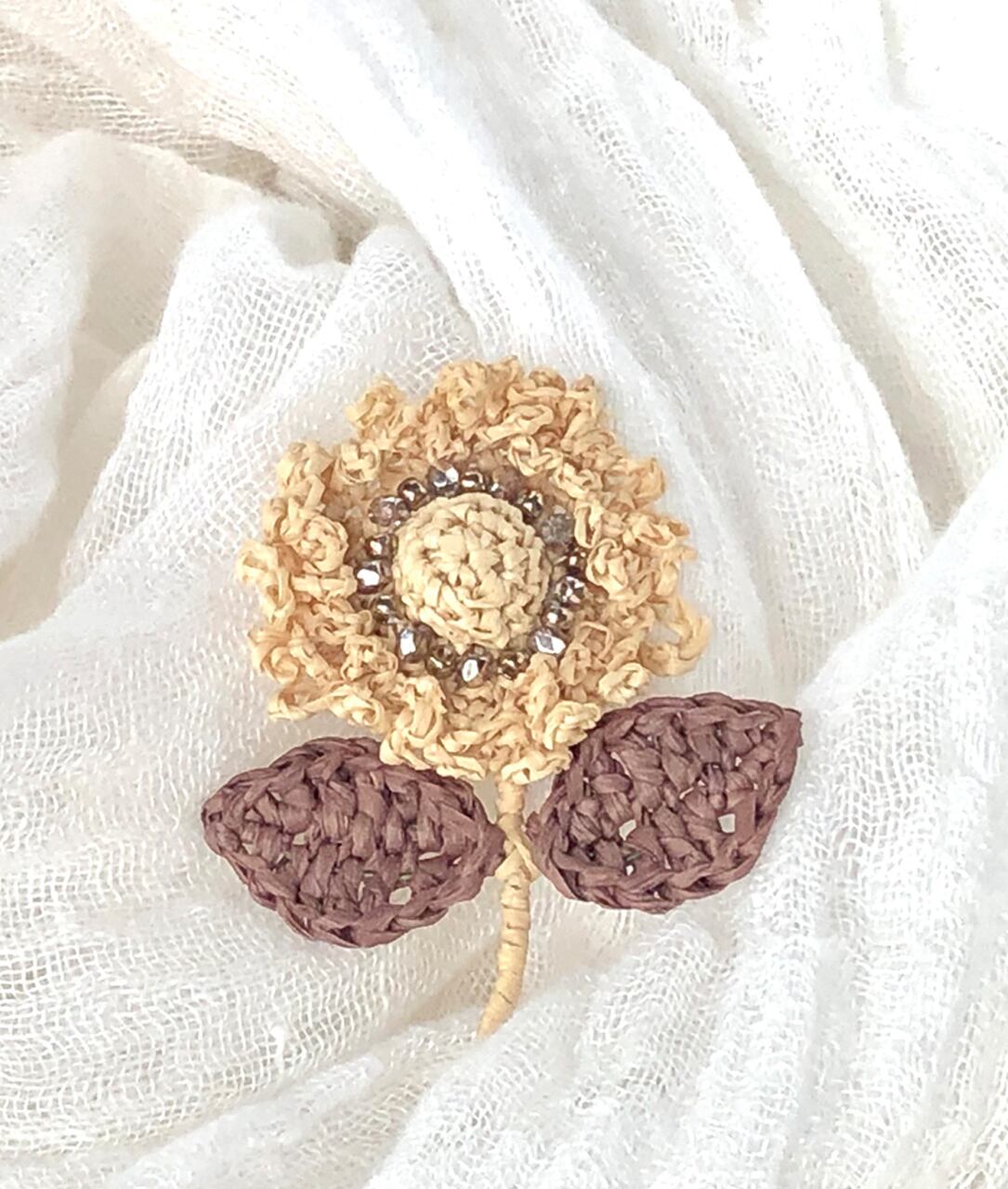 ラフィアで編んだ花のブローチです。