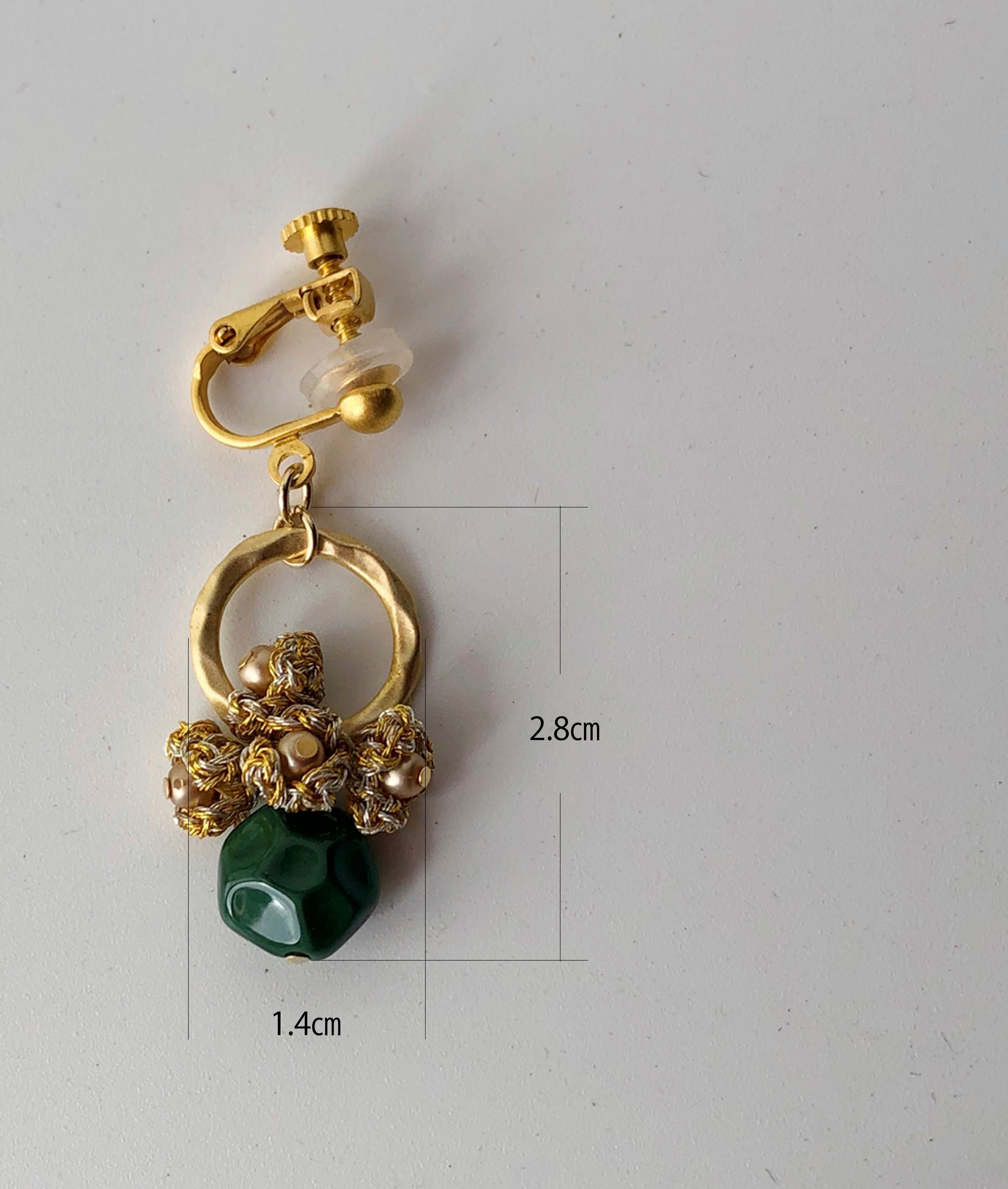 クロッシェ小花&リングのイヤリング・ピアス(Green/Gold)
